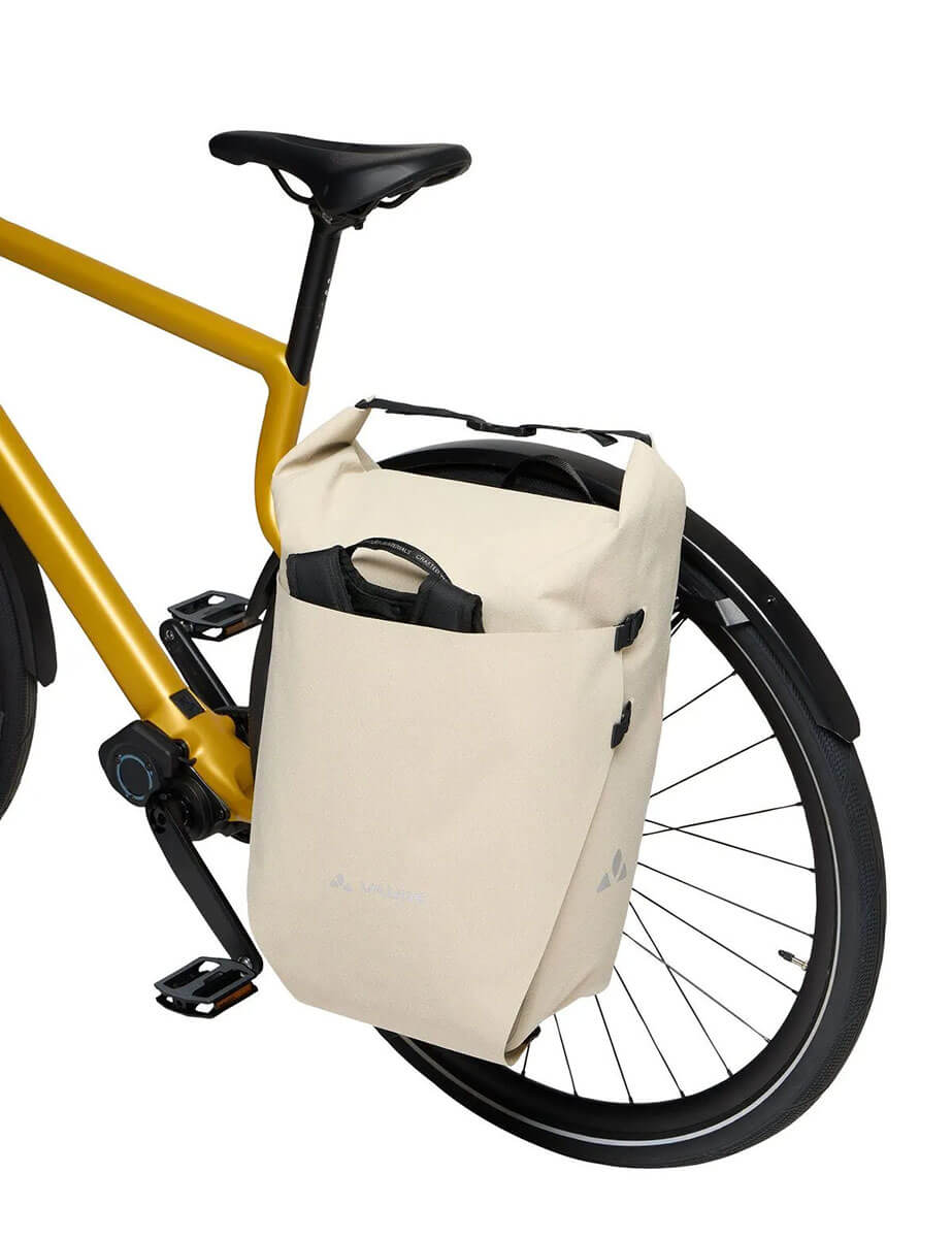 Flexibel als Rucksack oder Fahrradtasche nutzbar – Die Schultergurte lassen sich schnell verstauen, sodass du die Tasche sicher am Gepäckträger (8–16 mm Durchmesser) befestigen kannst.